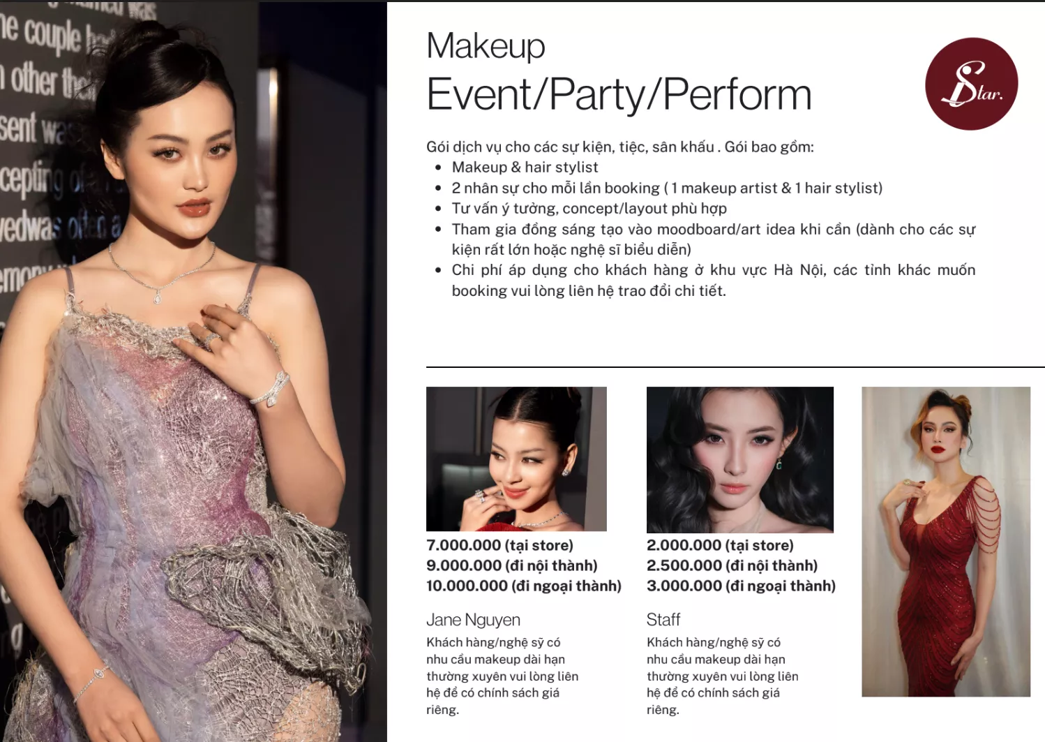 - Makeup & hair stylist đầy đủ, tạo kiểu phù hợp với sự kiện/tiệc/sân khấu.